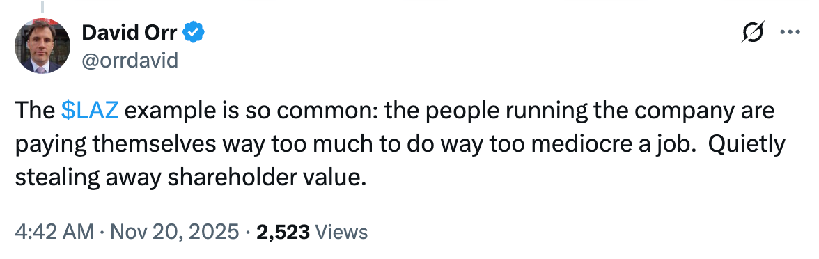 Bleecker also highlighted that insiders have sold $44 million in stock in the last year, ~58% of their total holdings.