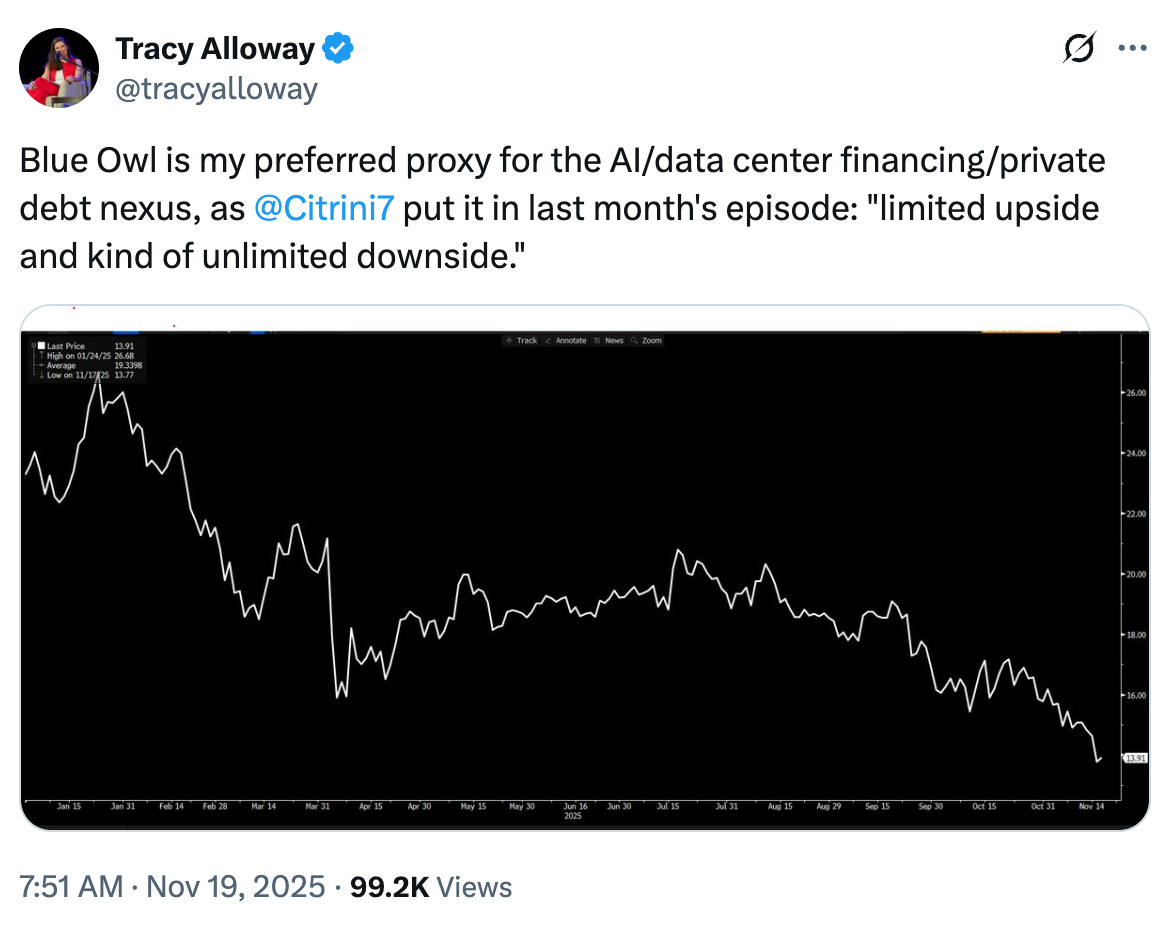 “Blue Owl private credit fund merger leaves some investors facing 20% hit” (FT)