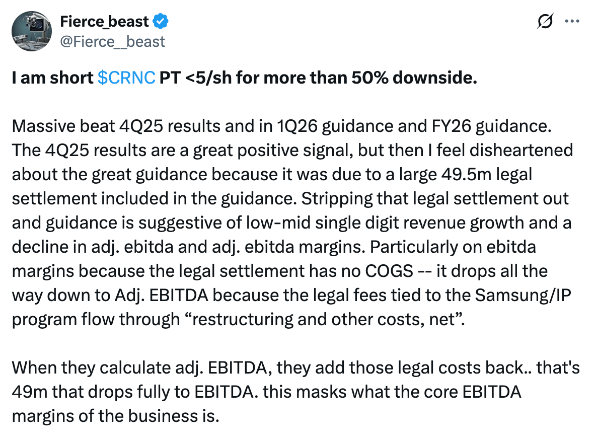 NINGI Research published on Critical Metals (NASDAQ: CRML — $749 million), a lithium and rare earth elements mining company. NINGI alleged the company “constructed its entire narrative on geological fantasies and engineering impossibilities.” NINGI also raised concerns about the company’s leadership, citing past regulatory sanctions and “a long list of failed companies,” including four past public companies affiliated with CRML’s CEO that later fell more than 90%.