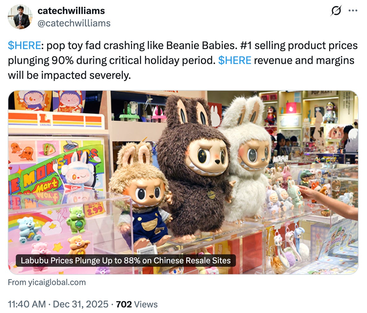 Welcome to The Bear Cave! Our last premium articles were “Problems at Pattern Group (PTRN)” and “Problems at Serve Robotics (SERV).” This Thursday, January 8, The Bear Cave will release our annual list of the best research tools for investors and on Thursday, January 15, we will return with our normal deep-dive investigations for paid readers.